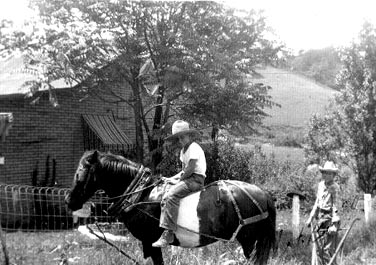 Billy and Eddie Bowyer plowing with Prince, our wonder