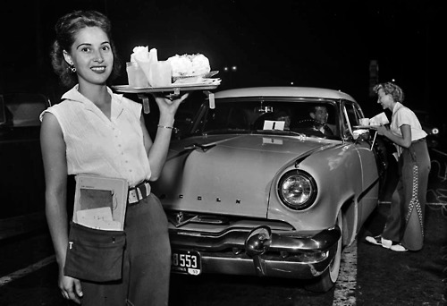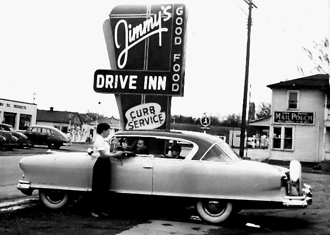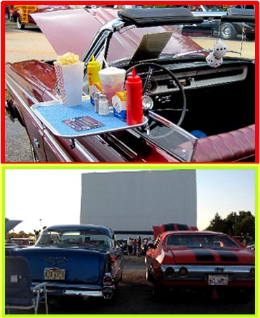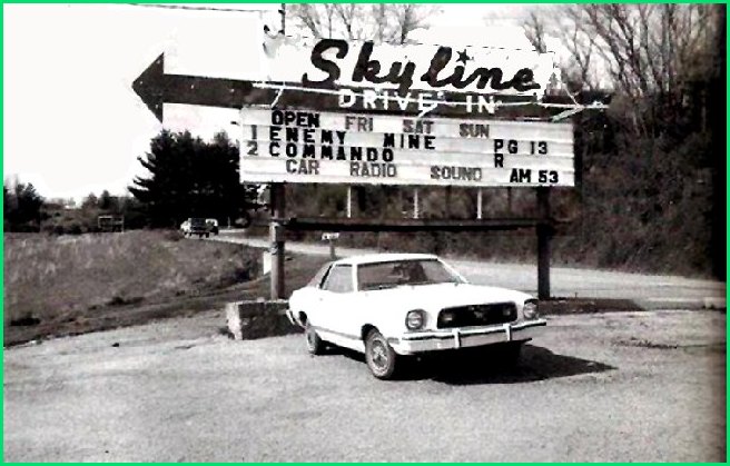 The drive-in movies were great! I've been to Skyline Drive-in, above, many times; now all that is left is the sign. Only in my memories. Best thing about going there, no need to dress up. I think some people even wore their pajamas. The photo above shows the entrance, the road behind the car. Pop would take me once in a while after I outgrew the kiddie movies at the Orpheum in town. I'd go every Saturday to see Roy Rogers. Sometimes Gene Autry and Lash Larue, but my hero was Roy Rogers. It cost a nickel in those days. |