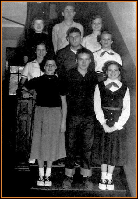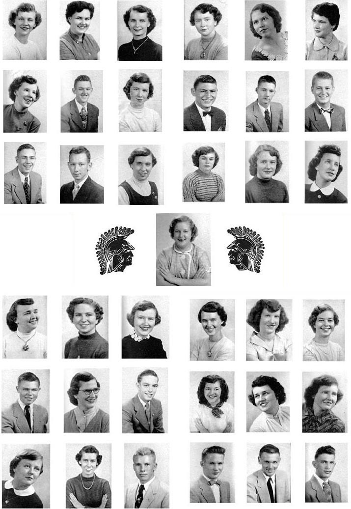 Becoming freshmen in 1951, we had Pollyanne Nepps as our president. Marguerite Schweinebraten was elected “Daisy Mae” of Sadie Hawkins Day, by the high school. Mary E. Taylor was our advisor.~~~~~~~~SENIOR HISTORY~~~~~~~~ As the president of our sophomore class, we chose Sam Clifton. In the class tournaments we received the honor of being the best cheering section. Miss Eva Wiant was our new advisor.